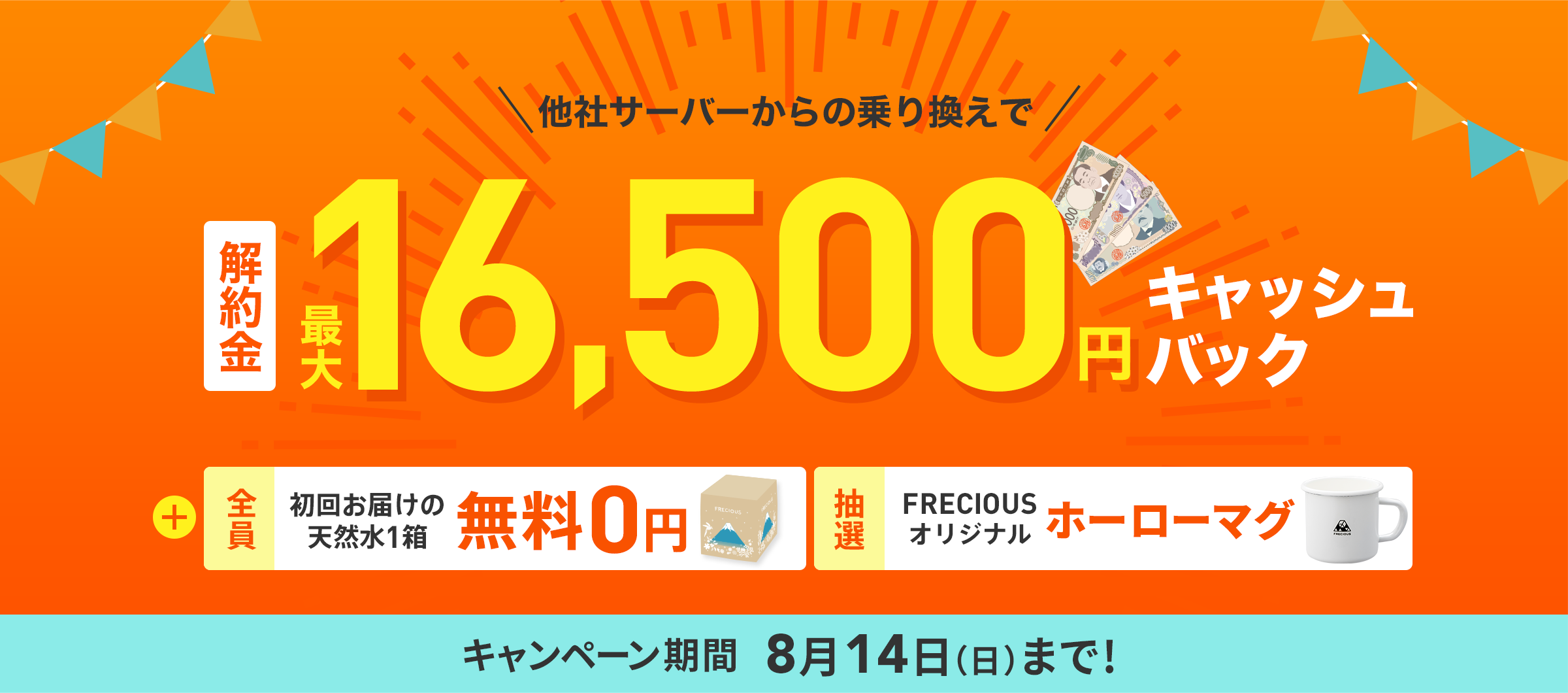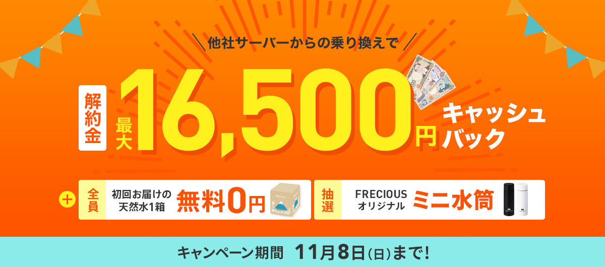 さらに、現在フレシャス以外のウォーターサーバーを使用している方には、乗り換えサポートを利用すれば、最大16,500円の解約金をキャッシュバックしてくれるキャンペーンも実施中!